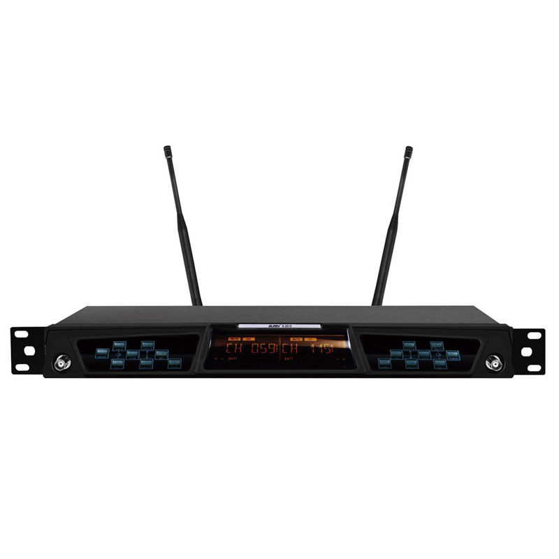 功能简介:●国际标准1U机箱内建双频道接收模块,外壳采用硬度高,质量轻的锌合金面板制成,具有坚固、耐热及隔离谐波辐射干扰的专业质量。 ●LCD液晶显示,同时具有RF/AF及自动选讯信号强度,频道、频率、静噪等多项功能。●采用UHF PLL电路,纯自动选讯接收方式,配合音码及杂音锁定静音控制,不但接收距离远,而且消除断音及接收不稳的缺失,防止周边设备辐射噪声的干扰。●手持外壳采用高强度锌合金制成,具有耐摔不故障的专业质量。●独特的手持外观设计,声音还原度极高,穿透力强。具有IR自动频道追锁功能。●手持采用高传真宽音域,高动态范围,音质清晰亮丽的超心型指向性高级动圈式咪心,展现最佳音质。●先进的高效率及低谐波辐射的发射电路,耗电最省,电池连续使用时间最长。●使用方便、功能强大、特性稳定,能在各种复杂的专业演唱环境下,获得满意的效果。接收机指标:频率范围:640-690MHz调制方式:宽带FM可调范围:50MHz信道数目:200信道间隔:250KHZ 频率稳定度:±0.005%以内动态范围:87dB最大频偏:±45KHZ音频响应:80HZ-18KHZ(±3dB)综合信噪比:>105dB综合失真:≤0.5%工作温度:-10℃--+70℃双接收LCD液晶显示:显示频率/频道,接收信号电平等接收机方式:二次变频超外差中频频率:第一中频:110MHZ,第二中频10.7MHZ无线接口:BNC/50欧姆灵敏度:12 dBµV (80dBS/N)灵敏度调节范围:12-32 dBµV杂散抑制:≥75dB最大输出电平:+10 dBV发射器指标:液晶显示器:显示/频道和电池电量天线程式:内置螺旋天线输出功率:高功率30mW;低功率3mW,高、低两档可调杂散抑制:-60dB供电:两节AA电池使用时间:30mW时大于8个小时,3mW时大于10小时